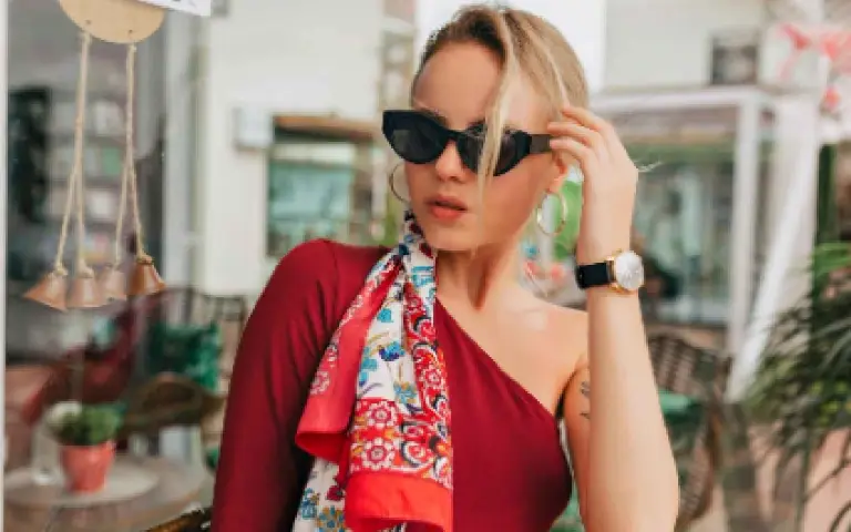 Naočare za sunce dolaze u snažnim okvirima i arhitektonskim linijama. Inspiracija je retro, ali interpretacija savremena i svedena. One definišu lice i daju dozu samouverenosti čak i najjednostavnijem outfitu.Narukvice prate isti princip. Masivne, metalne ili skulpturalne forme nose se kao centralni komad nakita. Jedna upečatljiva narukvica zamenjuje slojevito kombinovanje i postaje vizuelni fokus.Detalji su jasni, vidljivi i namerni.Marama: najlakša transformacija garderobe